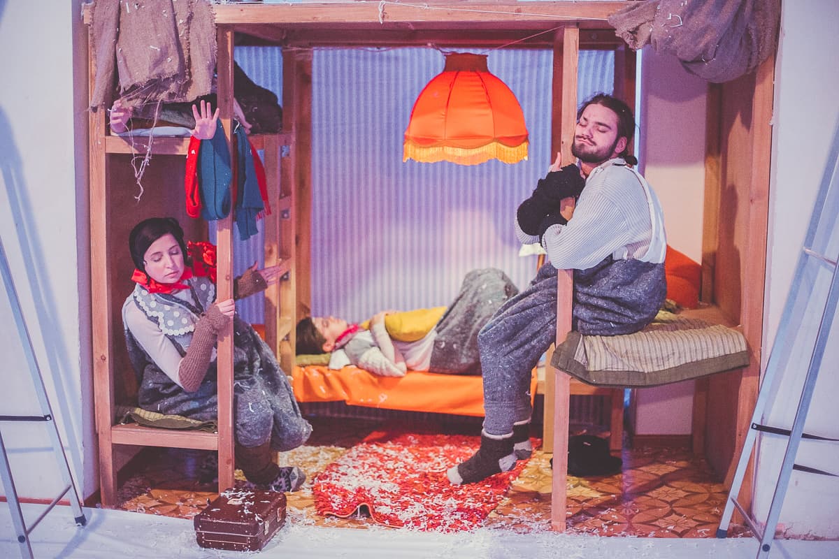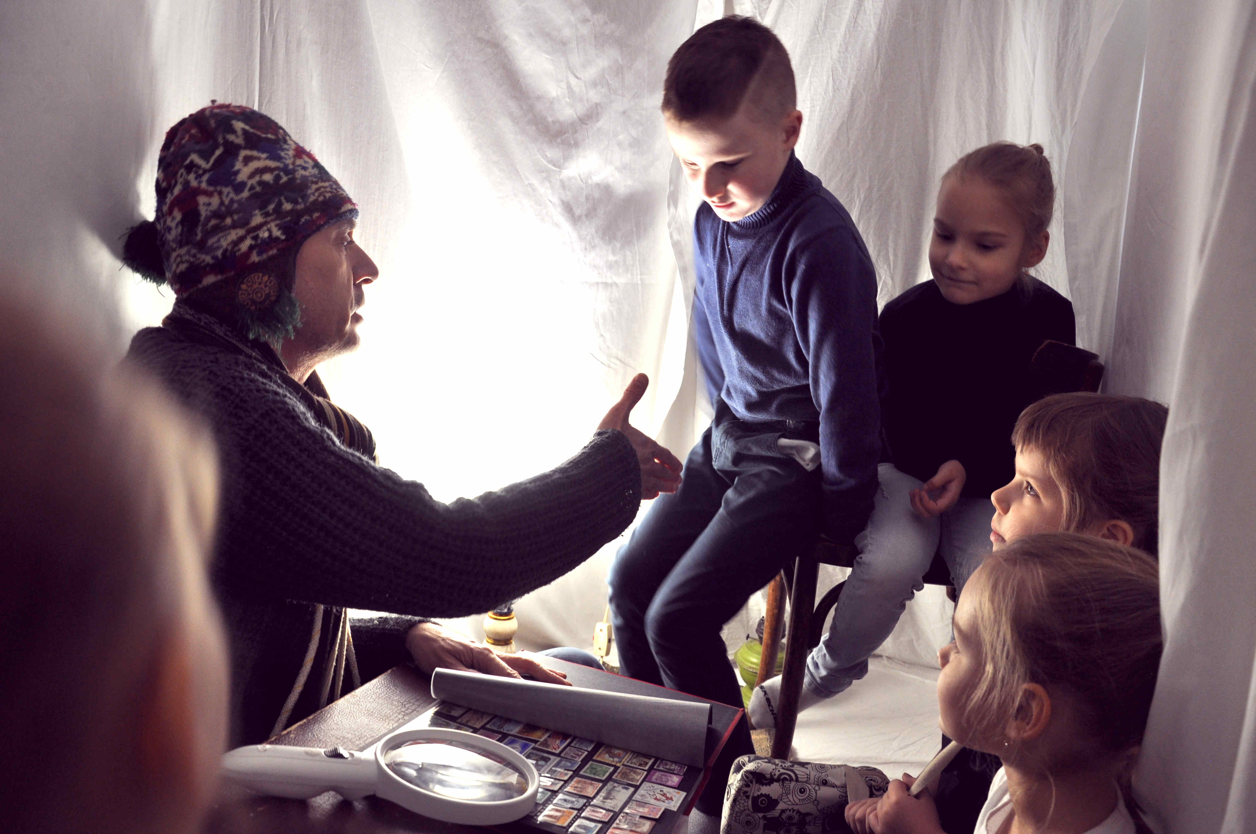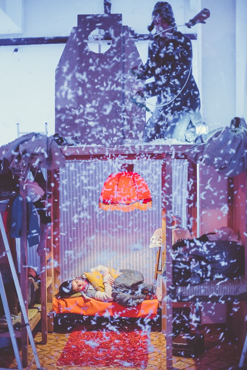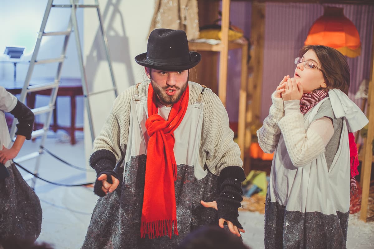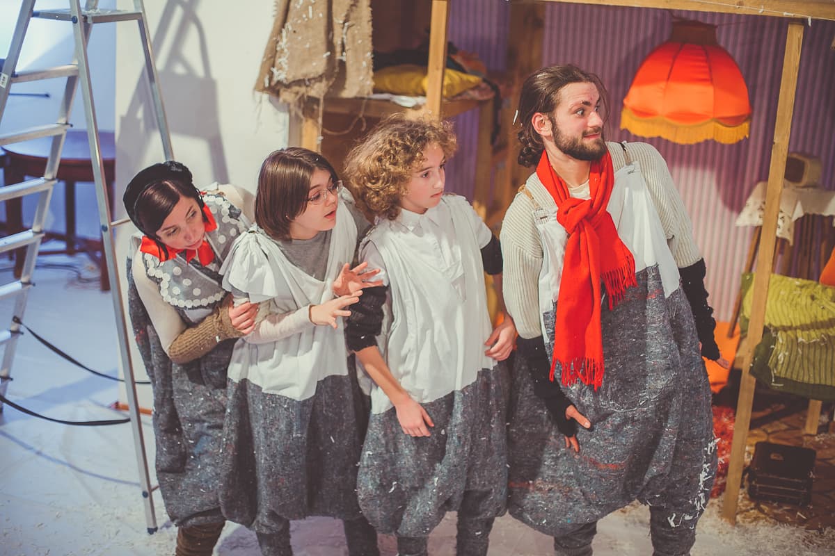 Зрители рассаживаются и начинается спектакль, в котором, благодаря камерной обстановке, актерам легко взаимодействовать со зрителями. И зрители смогут сыграть кнюттов, пришедших посмотреть на необычную рождественскую ель семейства муми-троллей.