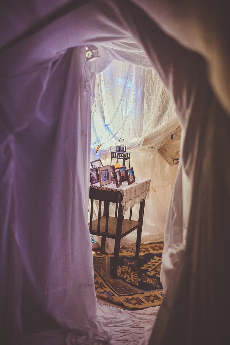 Сразу после гардероба зрители попадают в «снежный» тоннель, который, петляя, ведет их от домика к домику персонажей: Филифьонки, Гафсы, Снусмумрика, Хемуля. В каждом домике можно потрогать сказочного персонажа, обнять его, сфотографироваться, выпить чая, загадать новогоднее желание и т.д